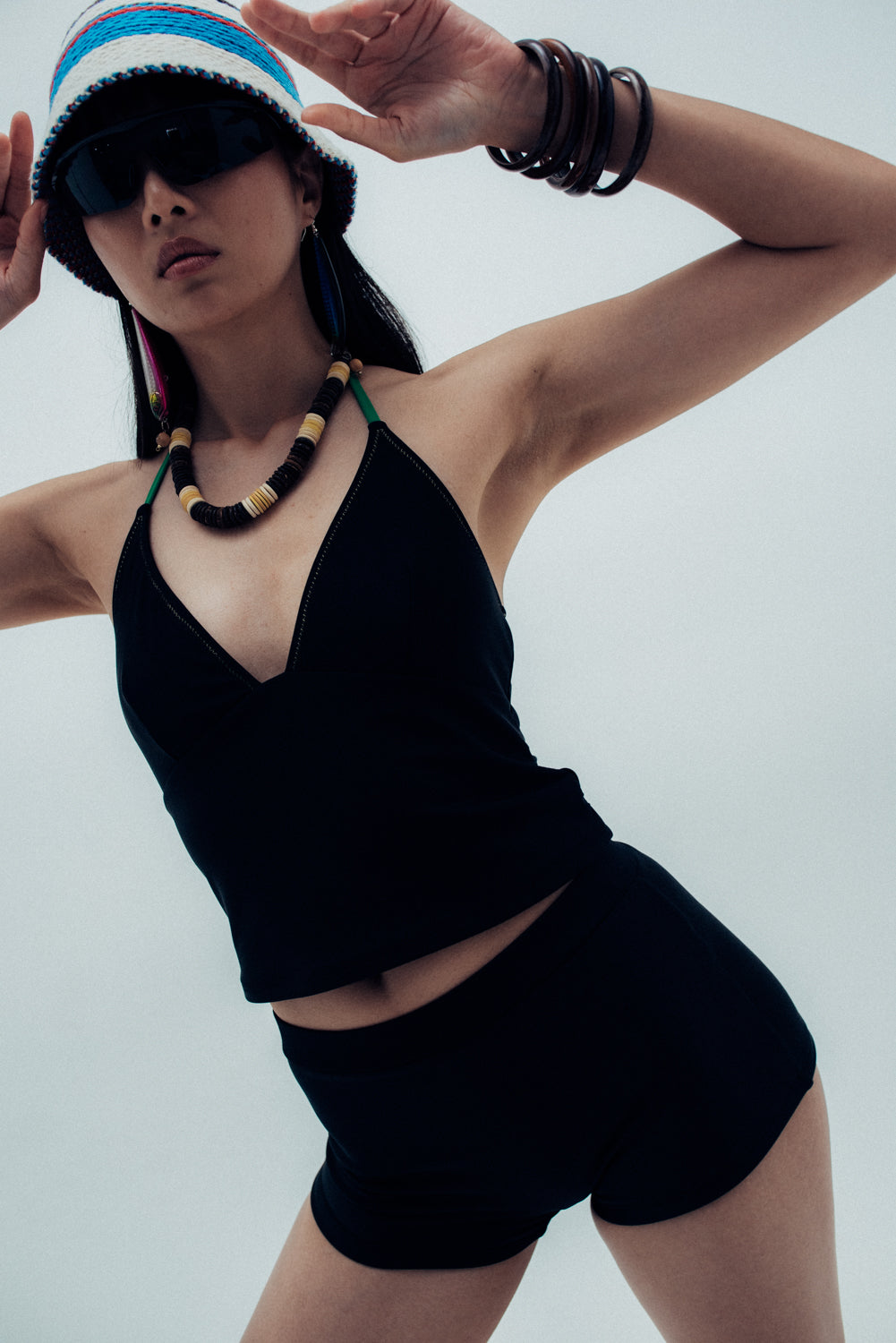 the goldie fifi short in our iconic black essentials fabric is the hottest addition to your bikini wardrobe. with a high waisted stretchy yet cheeky design, these shorts offer the perfect amount of stretch and comfort needed for all your summer activities. the fifi short is made to be mix & matched with any goldie essentials top.