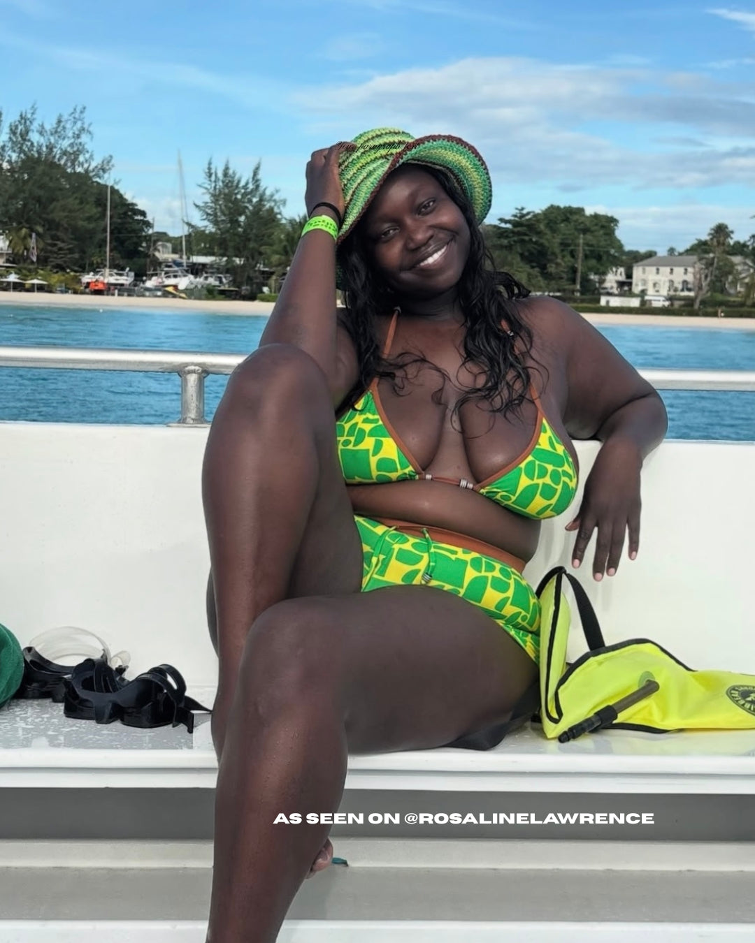 Be mindful when wearing your suits around concrete/rough surfaces/textured clothing/jewlery/etc. as these can snag or pill swim fabric. Please note that oils/lotions and sunscreens can also discolor swim fabric over time which is why we recommend hand washing with swimwear detergent after every single wear. It may seem like overkill but it’s worth the extra care to avoid unnecessary damage!